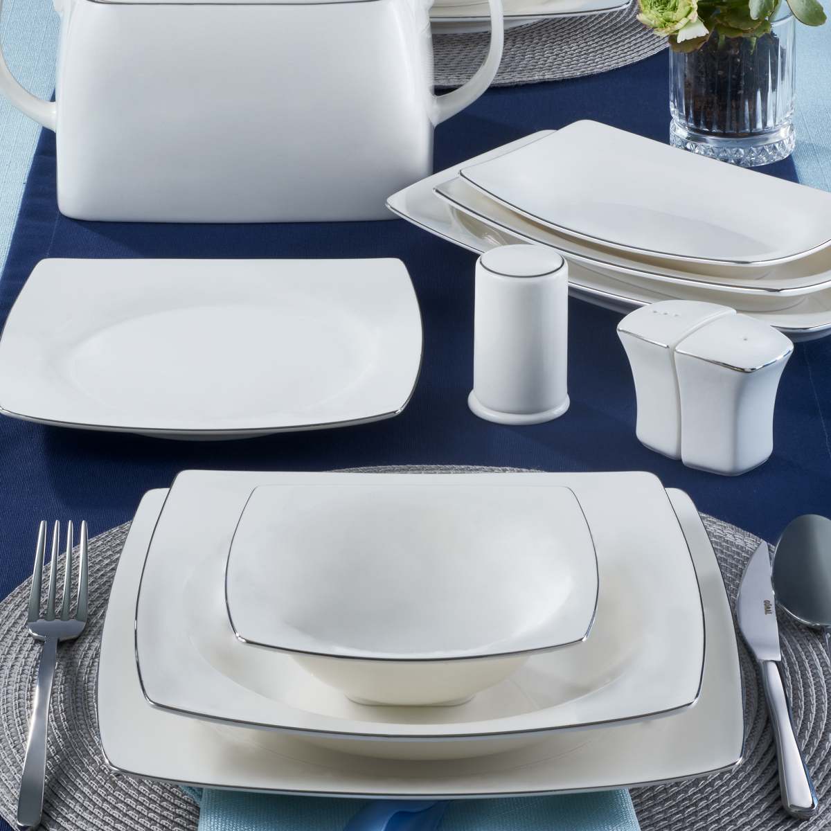 Home Caroline 85 Piece 12 Person Square Bone Dinner Set 220