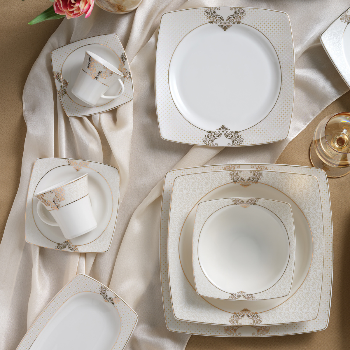 Home Caroline 85 Parça 12 Kişilik Kare Bone Yemek Takımı 6600