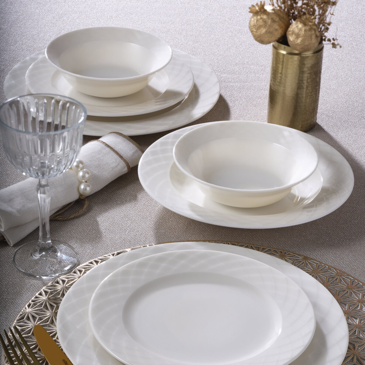Home Alfa 24 Parça 6 Kişilik Rölyefli Yuvarlak Bone Yemek Takımı