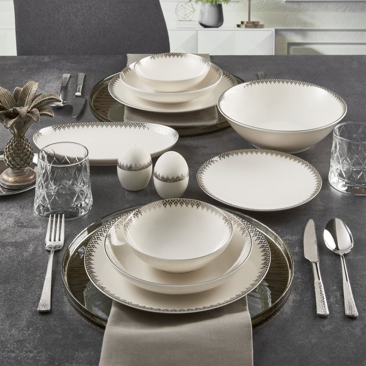 Her bir tabak, sıcak sohbetler ve samimi anılar için bir araya geliyor; sofralarınızın ruhunu zenginleştirerek, misafirlerinizi büyüleyecek unutulmaz anların habercisi oluyor. Bu yemek takımı, zarafetin ve estetiğin bir araya geldiği, her yemeği kutlama haline getiren bir sanat manifestosu.