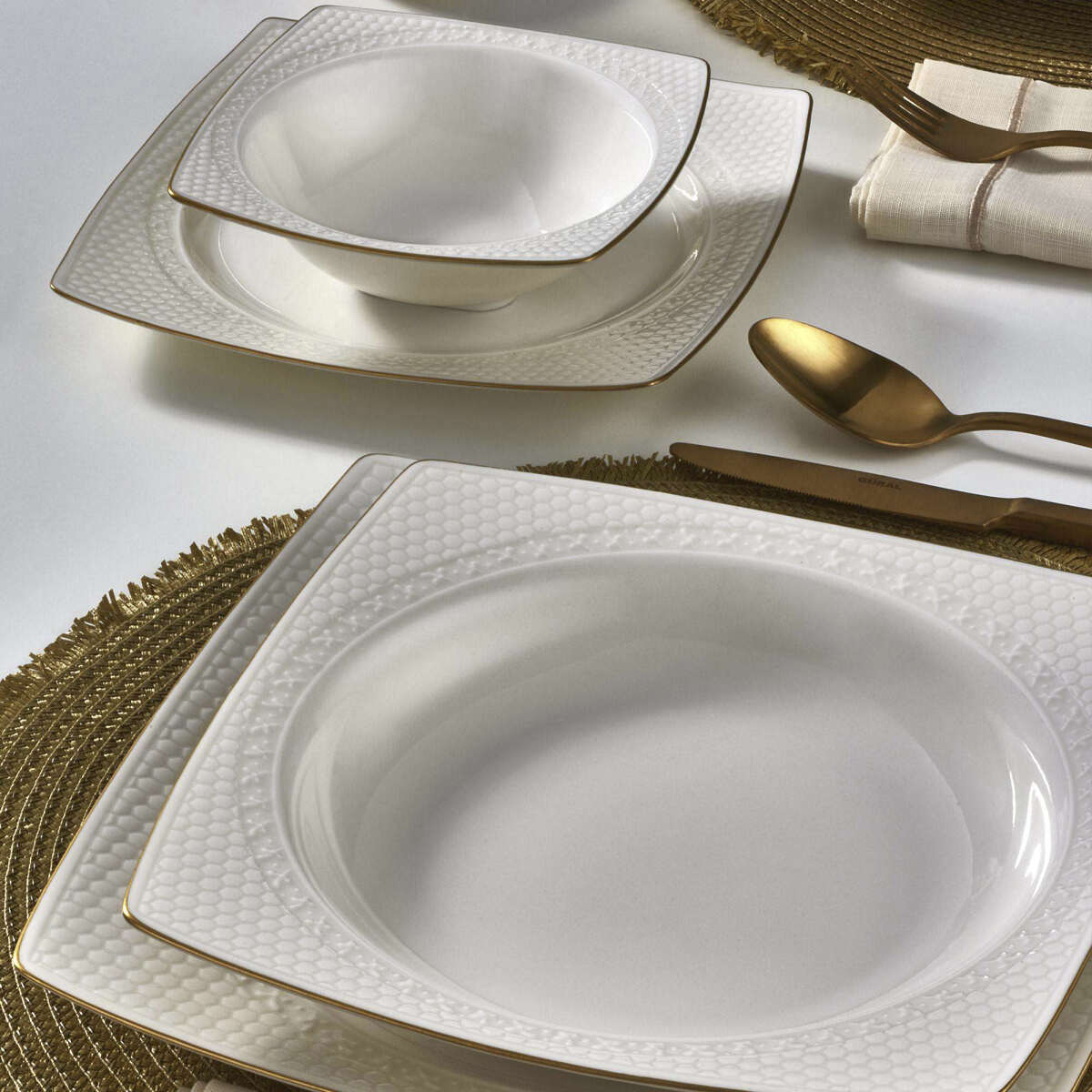 Home Bonenjoy 54 Parça 12 Kişilik Kare Bone Yemek Takımı - Altın