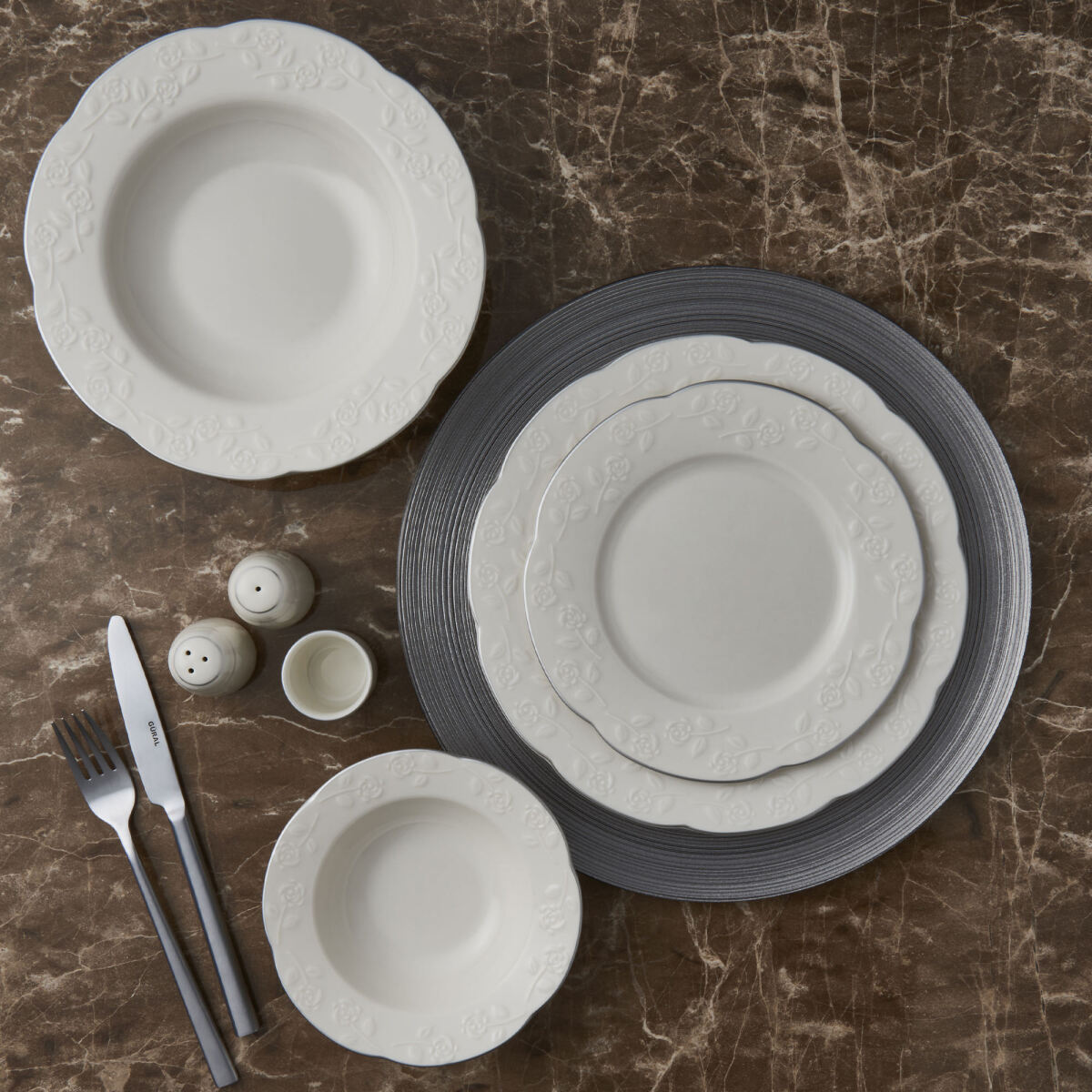 Home Carmina 24 Parça 12 Kişilik Yuvarlak Bone Yemek Takımı - Platin