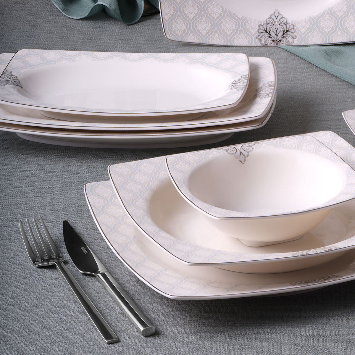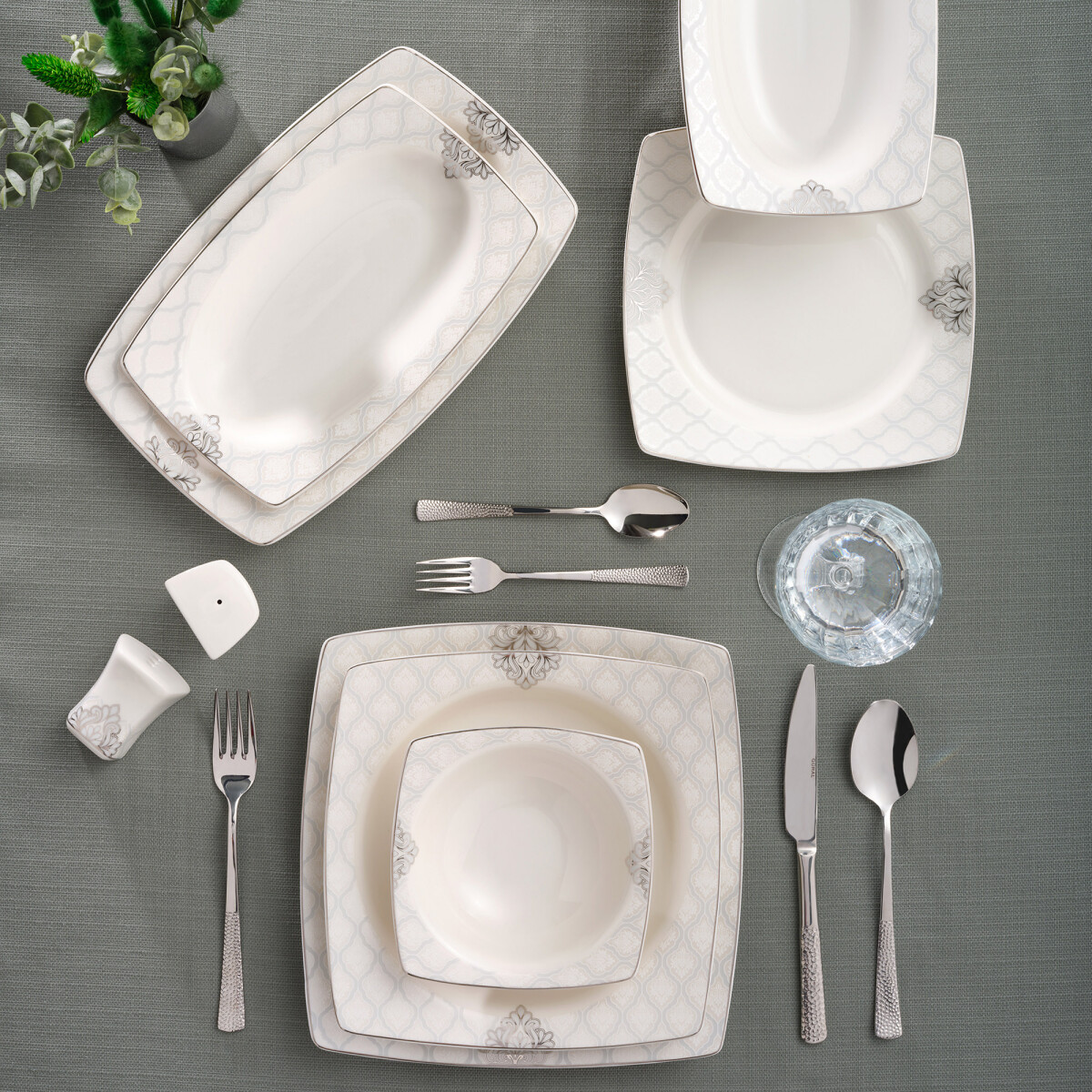 Home Caroline 54 Parça 12 Kişilik Kare Bone Yemek Takımı 5993