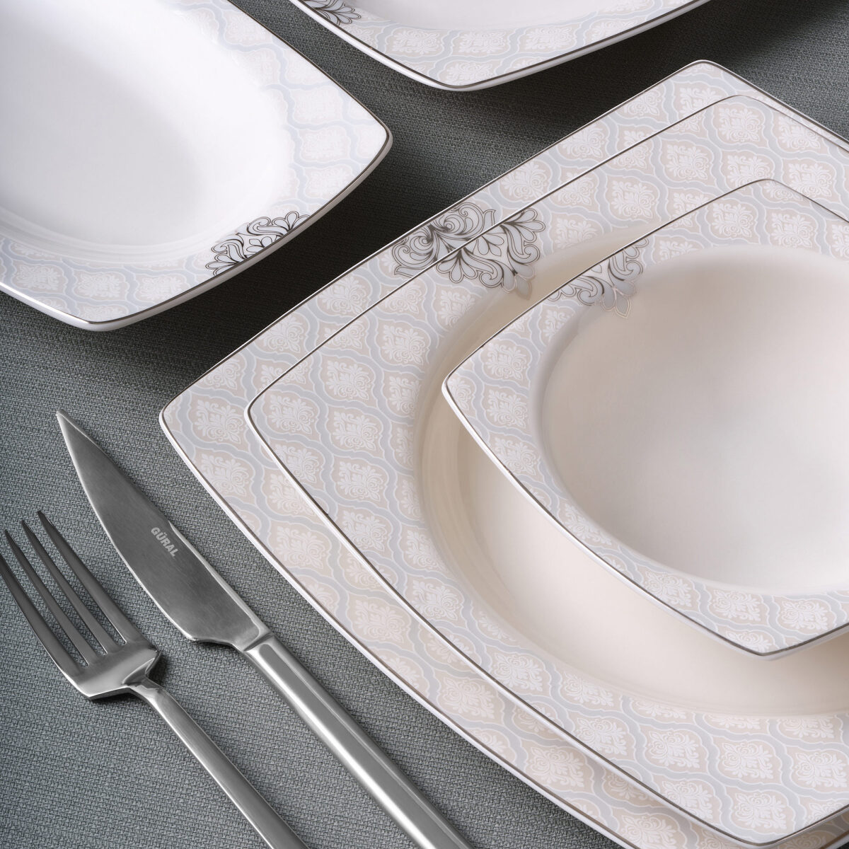 Caroline serisi, şık kare formu ve dayanıklı yapısıyla sunumlarınıza modern bir dokunuş katıyor. 12 kişilik kullanım için tasarlanan bu set, estetik detayları ve üstün kaliteyi bir araya getiriyor.