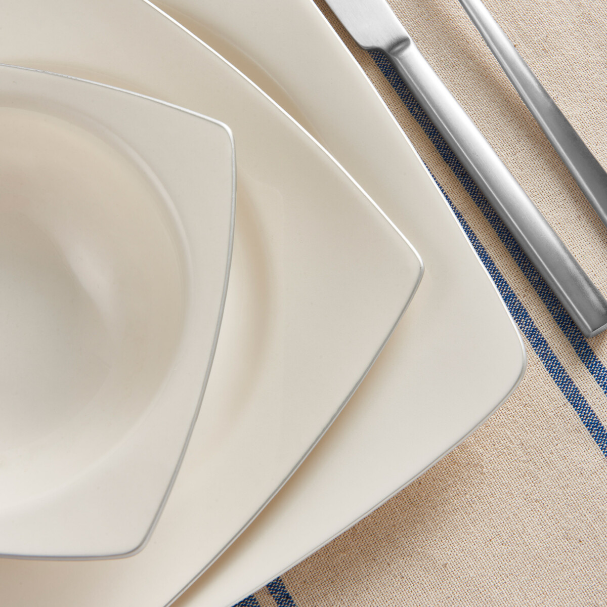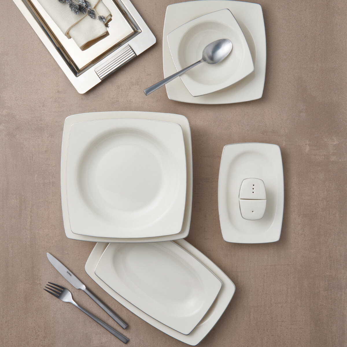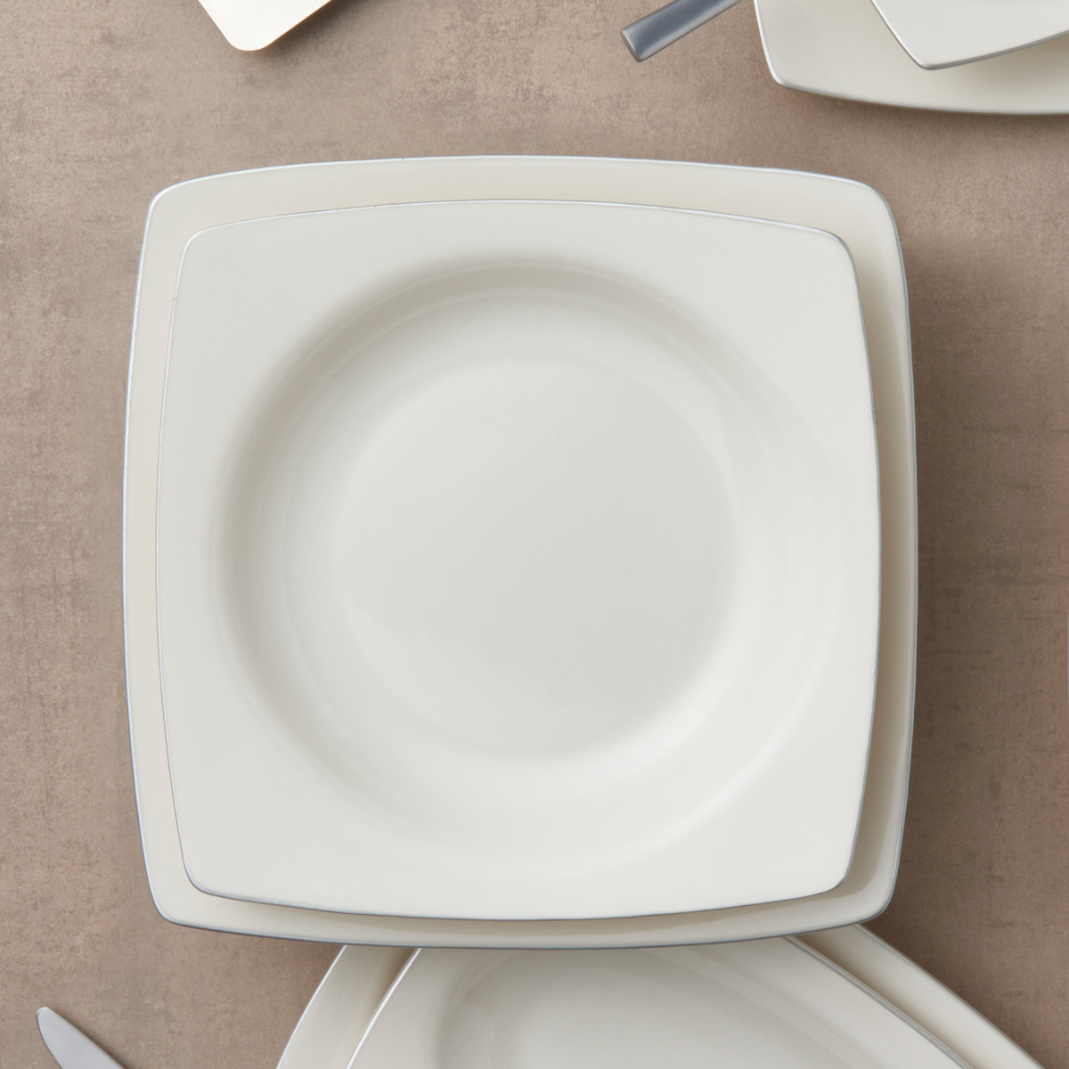 Home Caroline 54 Parça 12 Kişilik Kare Bone Yemek Takımı - Platin