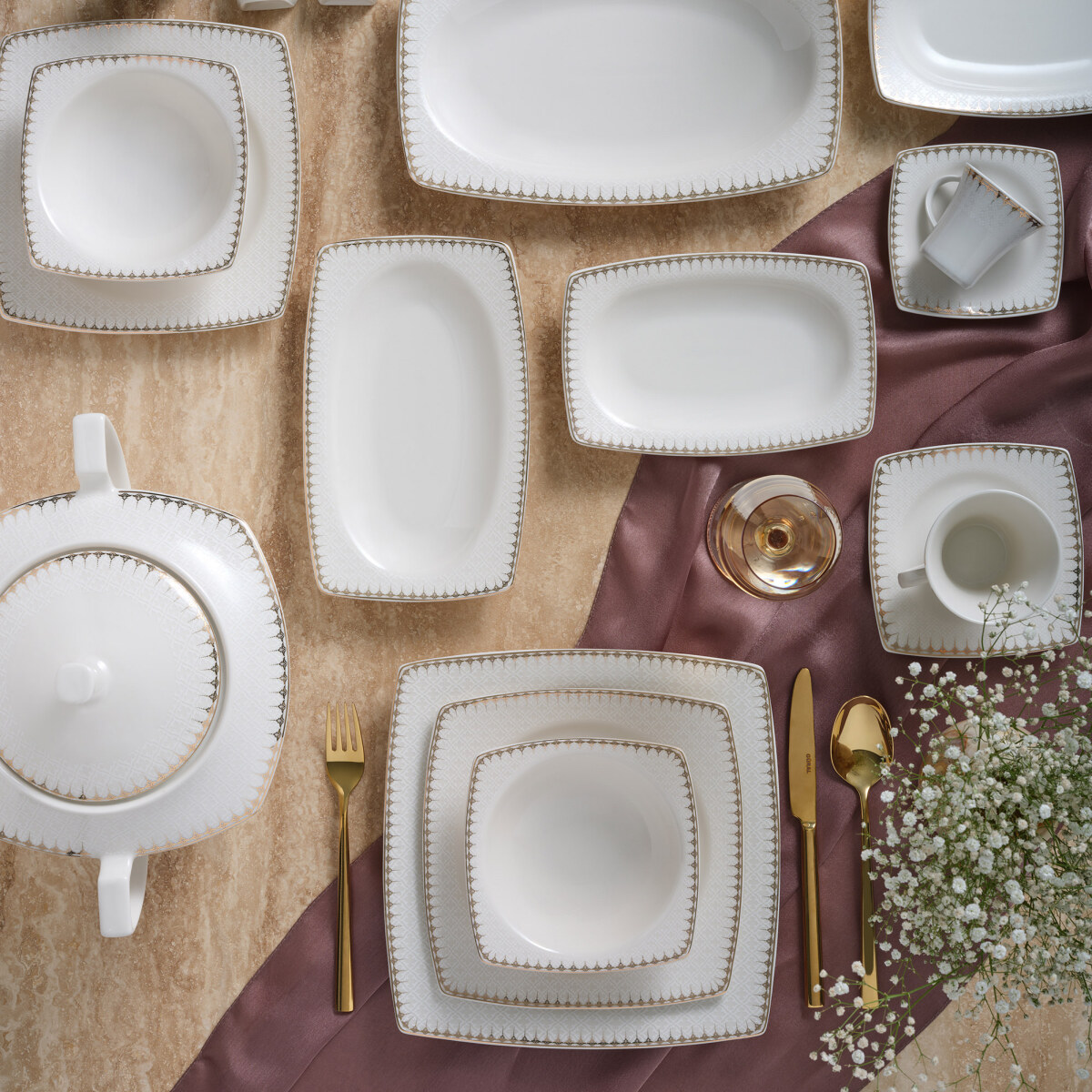 Home Caroline 85 Parça 12 Kişilik Kare Bone Yemek Takımı 6567