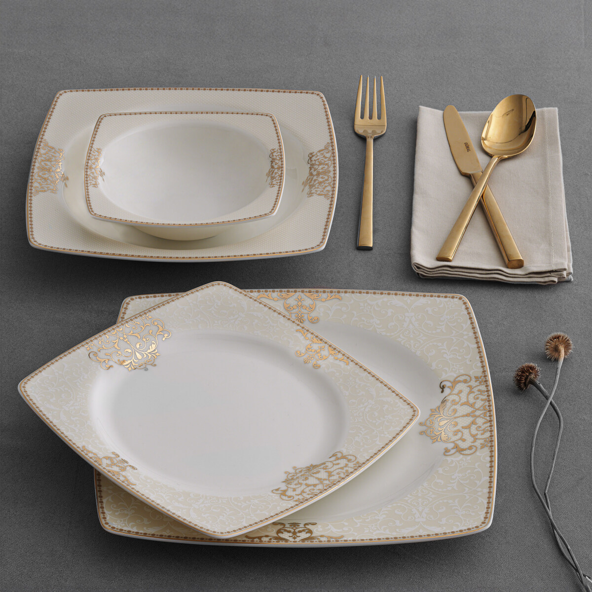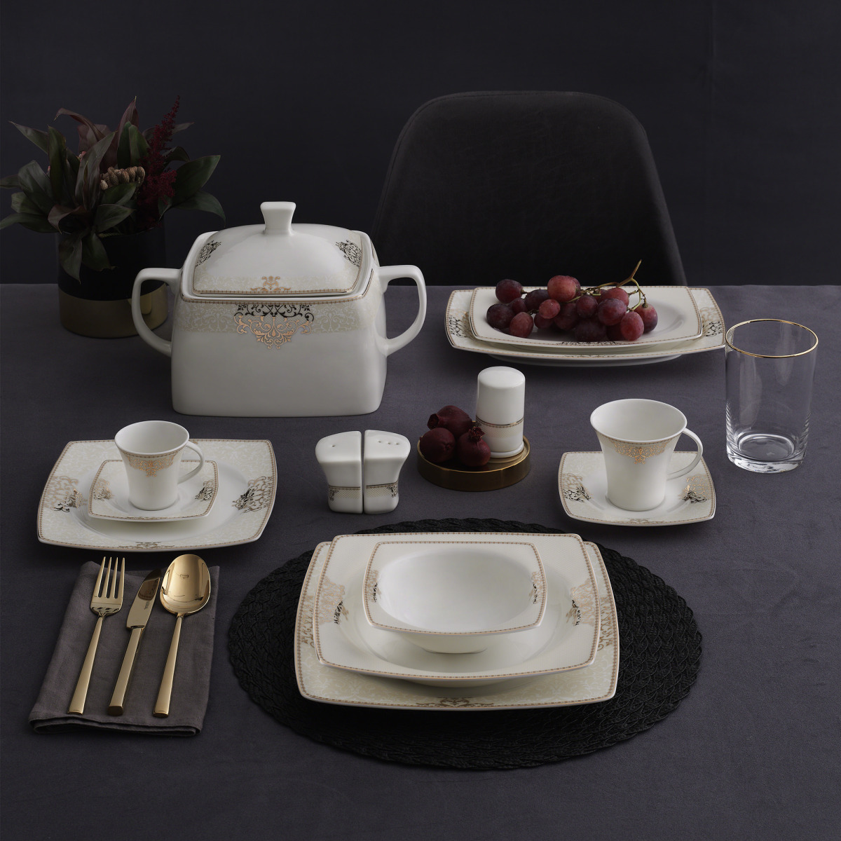 Home Caroline 85 Parça 12 Kişilik Kare Bone Yemek Takımı 5686 AU