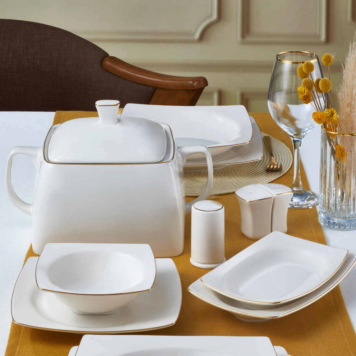 Caroline serisi, şık kare formu ve dayanıklı yapısıyla sunumlarınıza modern bir dokunuş katıyor. 12 kişilik kullanım için tasarlanan bu set, estetik detayları ve üstün kaliteyi bir araya getiriyor.
