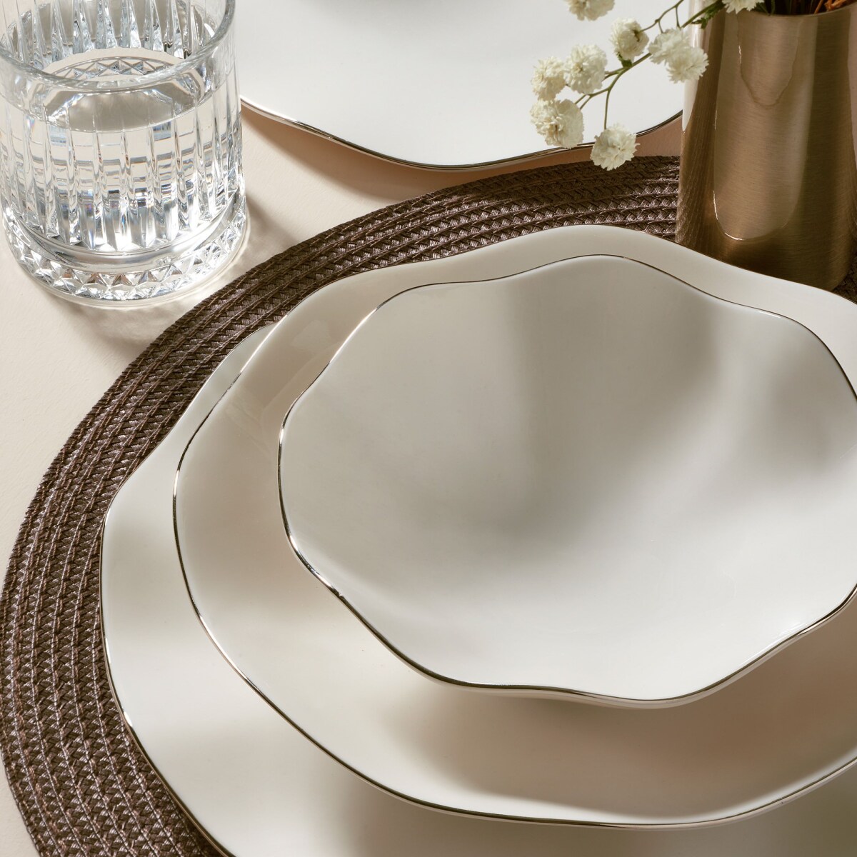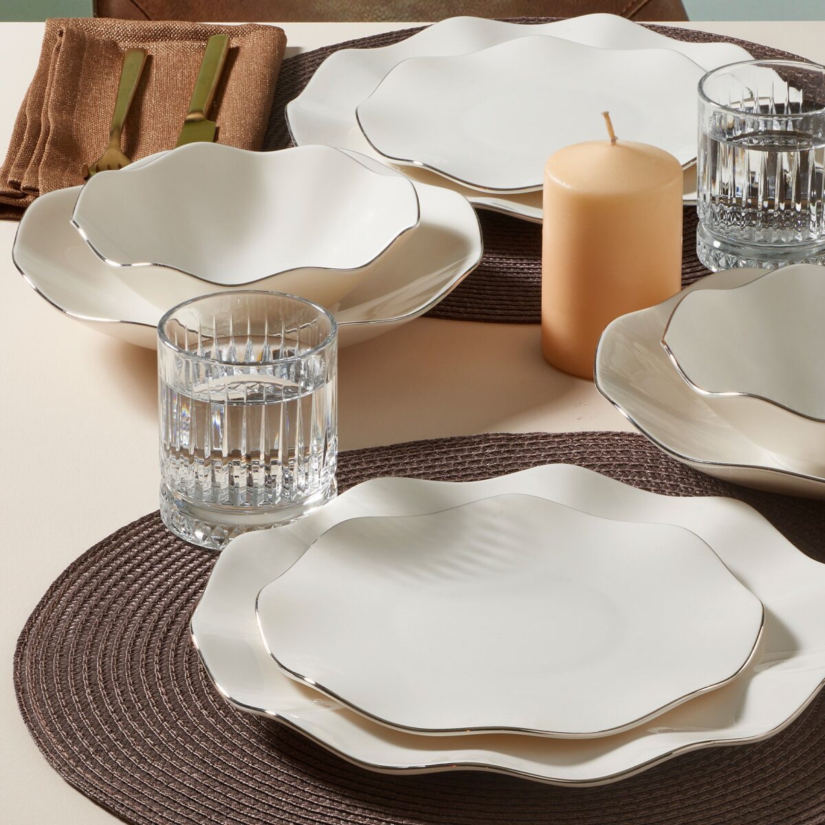 Fine Line, zarafeti ve şıklığı ustaca harmanlayarak sıradan sofraları olağanüstü anlara dönüştürüyor. 30 ve 54 parçadan oluşan setleri, benzersiz formları ve altın-gümüş file detaylarıyla her parçaya ışıltı katıyor.